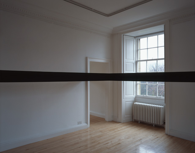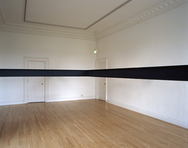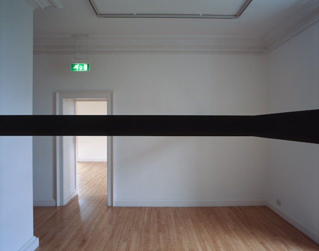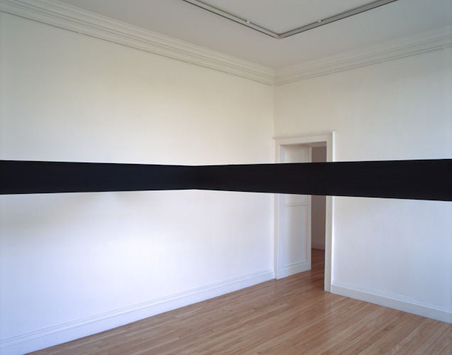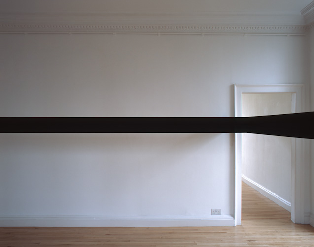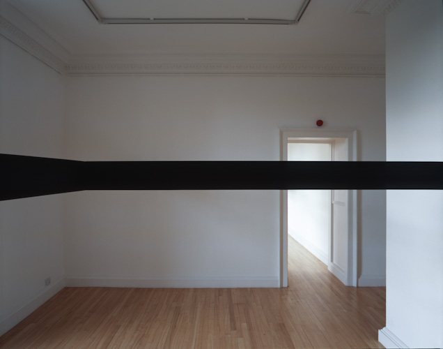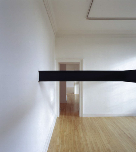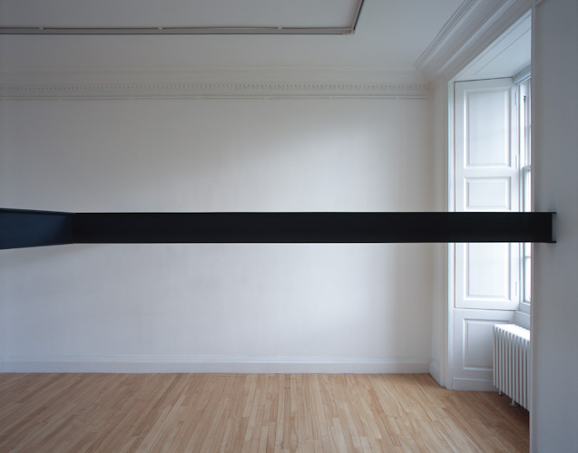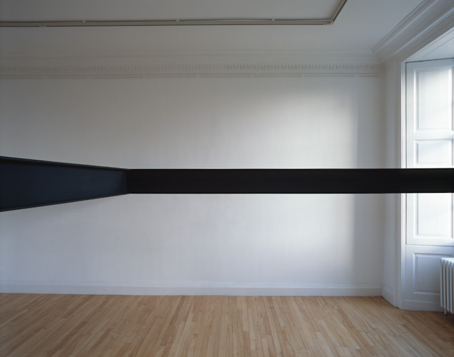 Painted plywood beam [profile: 10 x 16.5 cm], steel brackets. Dimensions variable.