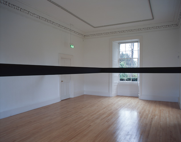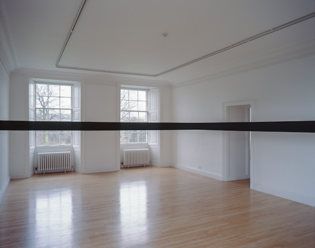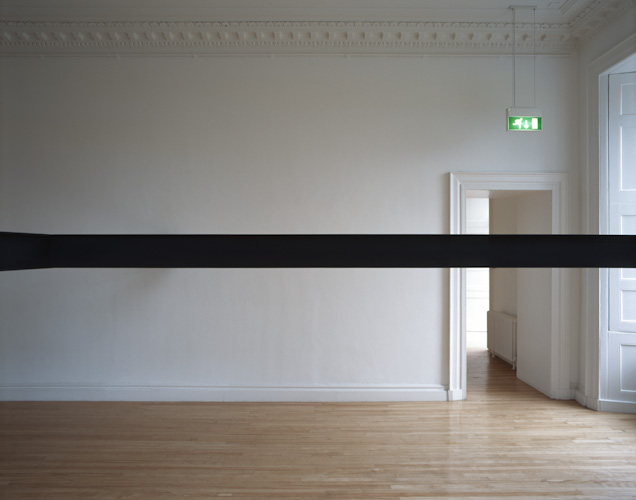 Constructed beams positioned at eye level divide the space and the bodies of those populating it. The viewer's vision is obstructed and their movement frustrated.